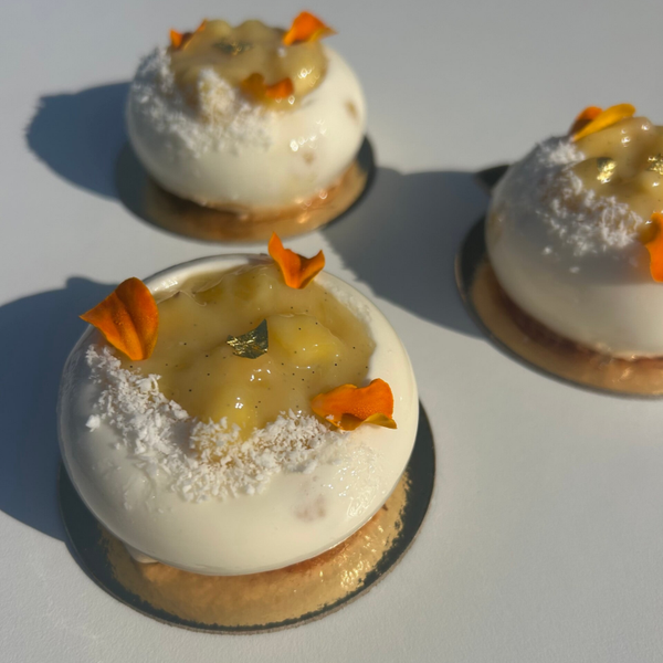 Chaque bouchée invite au voyage, entre l’exotisme de la mangue et la douceur enveloppante de la noix de coco, dans un équilibre juste et élégant, pensé pour les amateurs de gourmandises sophistiquées.