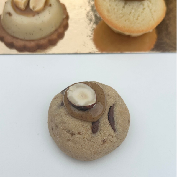 - Mini cookie noisette : pâte à cookie au chocolat au lait, cœur de praliné noisette fondant.